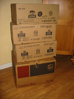 And here is our years supply of oatmeal goodness stacked proudly in our den.....