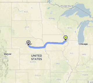 The leg from Jackson Iowa to Denver Colorado is 864.9 miles.