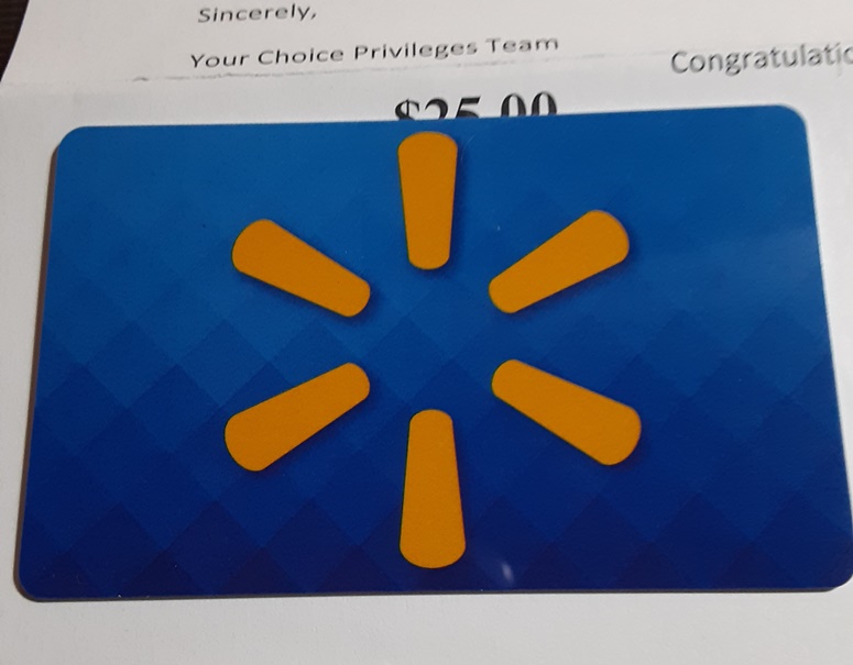 * I used some c/c points to send away for a $25 Walmart gift card and it showed up this past week.........